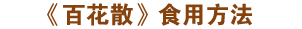 服法:每日四次(包括晚上睡覺前一次), 每次蜂蜜及《百花散》藥粉各一包調(diào)和,飯前一小時(shí)用適量溫開水沖服。