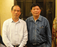 浙江天臺(tái)山梅氏宗譜 中國抗癌協(xié)會(huì)常務(wù)理事、河南省抗癌協(xié)會(huì)會(huì)長楊文獻(xiàn)教授和《百花散》傳人梅先生合影